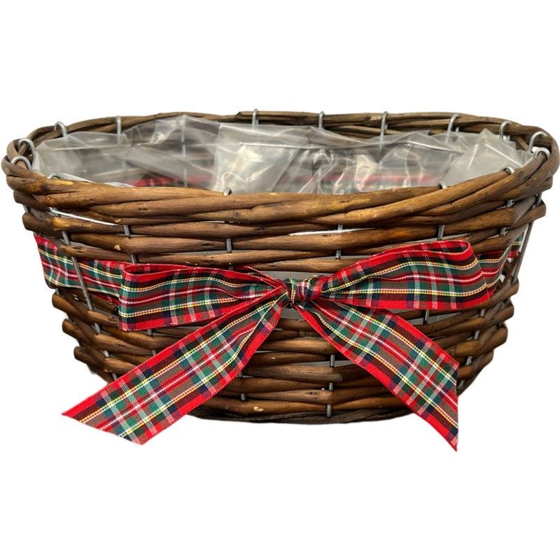 Willow Oval Basket with Tartan Ribbon x 25cm - Lined
