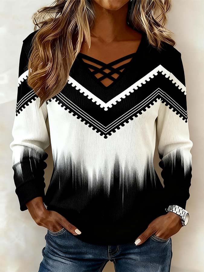 Women'S Casual Printed Long-Sleeved Top