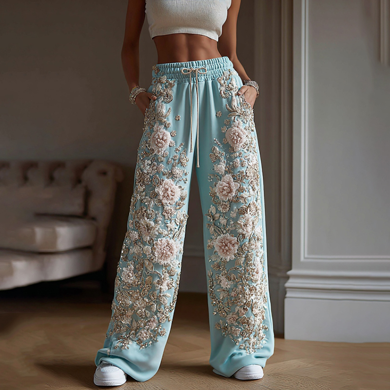 Women's Vintage Rose Embroidery Cozy Sweatpants